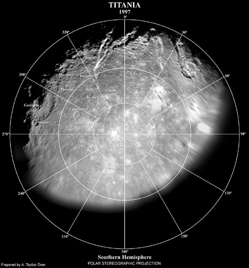 Titania est un caillou glacé de 1580 kilomètres de diamètre, perdu dans la grande banlieue du système solaire. Ce rocher ingrat, satellite de la lointaine Uranus, pourrait cependant se révéler plus intéressant que ne l’avait laissé supposer son survol par Voyager II en 1986. Analysant les résultats d’une occultation d’étoile par Titania en septembre 2001, une équipe de chercheurs de l’Observatoire de Paris tente à présent de dessiner les contours de sa possible atmosphère.
