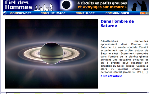 Depuis ce dimanche midi, nous connaissons un afflux massif de visites sur nos pages de l’Apod, l’image astronomique du jour. Nous supposons que ces visiteurs ont entendu parler de Ciel des Hommes et de l’Apod sur un média audiovisuel de grande diffusion, mais n’en avons pas été informés préalablement. Alors si vous êtes un de ces « visiteurs du dimanche », vous seriez très aimable de me faire savoir comment vous avez découvert Ciel des Hommes via le formulaire de courrier disponible sur cette page.