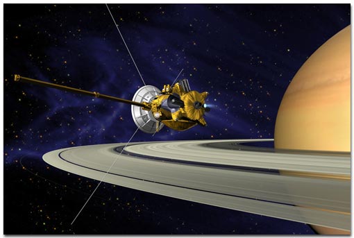 La sonde Cassini - une mission menée conjointement par la NASA, l'ESA, et l'agence spatiale Italienne – est actuellement en route pour Saturne. Elle y arrivera en juillet 2004 et deviendra le premier engin spatial à se mettre en orbite autour de Saturne, sans se contenter de la survoler de loin.