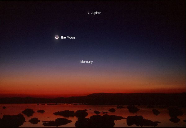 Si vous avez la possibilité de guetter les Orionides toute la nuit, vous serez récompensé au petit matin par le lever de Jupiter qui aura le bon goût de venir avec un croissant (lunaire…). Jupiter et la Lune seront relativement proches l’un de l’autre deux jours de suite, vous bénéficierez donc d’une séance de rattrapage mercredi matin si vous vous êtes endormi la nuit précédente… Et vous aurez même la possibilité de voir encore quelques Orionides… Peut-on rêver mieux ?