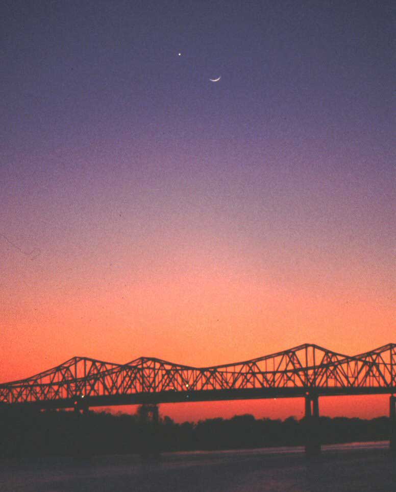 Le 25 décembre 2003, au soir de Noël, regardez vers l’Ouest en direction du Soleil couchant. Même avant que le ciel ne soit totalement plongé dans l’obscurité, vous pourrez apercevoir les deux vedettes de la soirée : non loin de l’horizon, l’éclatante Vénus flirtant avec un fin croissant de Lune. Une superbe conjonction.