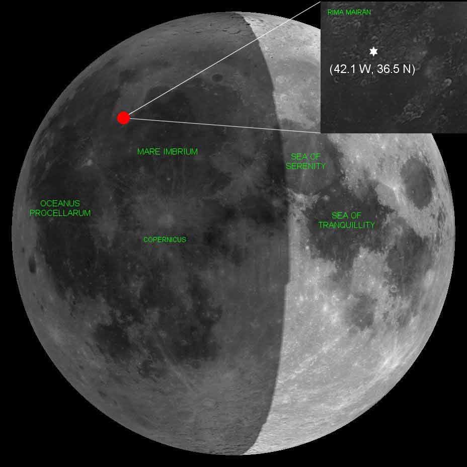 La déflagration, d’une puissance équivalente à l’explosion d’environ 70 kilos de dynamite, s’est produite le 7 novembre 2005 près du rivage de Mare Imbrium, la Mer des Pluies. La cause en est très probablement l’impact d’un météoroïde de 12 centimètres de diamètre qui se déplaçait à une vitesse de 27 kilomètres par seconde, soit 97 200 km/h.