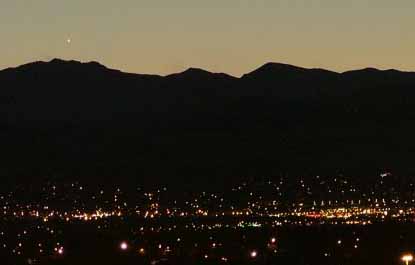 " C’est seulement la deuxième fois de ma vie que je vois Mercure " confesse l’amoureux du ciel Jeffrey Beall, qui a pris cette image depuis son balcon de Denver, dans le Colorado. Mercure est la brillante " étoile ", juste au-dessus de la chaîne montagneuse ; rivalisant avec les lumières de la ville.
