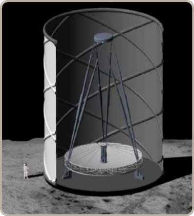 Placer un grand télescope à miroir liquide près des pôles lunaires est tentant. Le télescope lui-même pourrait être installé au fond d’un cratère où règne une nuit éternelle, où il resterait naturellement à des températures extrêmement basses, l’idéal pour de l’astronomie infrarouge. Les panneaux solaires nécessaires à l’alimentation des systèmes électriques seraient quant à eux placés sur des sommets au contraire quasi constamment éclairés.
