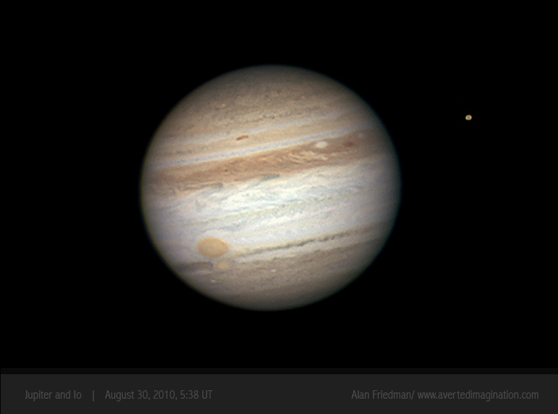 Mais n'oublions pas les lunes de Jupiter, car finalement, elles aussi ont rendez-vous avec la terre. Ces mondes grands comme des planètes ont chacun d’étonnantes particularités. Ainsi Io est-elle couverte de volcans actifs, Europe abrite peut-être un océan souterrain, Callisto est parsemée de vastes champs de cratères et Ganymède traversée d’étonnantes crêtes parcourant toute la planète. Lorsque que Galilée les a découvertes il y a 400 ans de cela, elles n'étaient rien de plus que de minuscules d'épingle de lumière dans son télescope primitif. Imaginez ce que un télescope amateur d'aujourd'hui peut révéler !